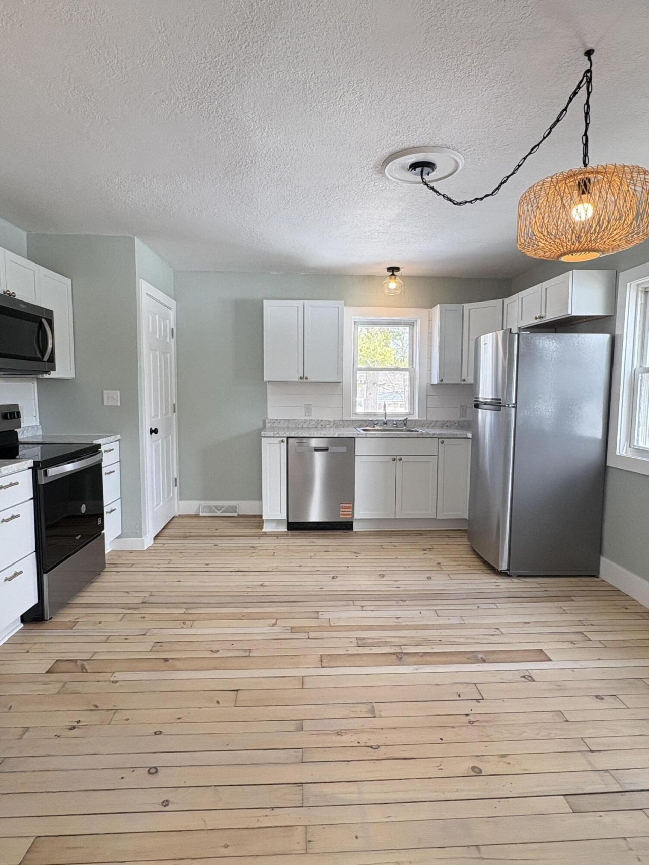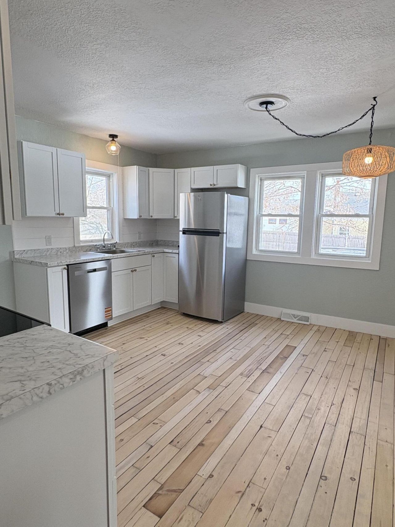 This beautifully renovated 4-bedroom, 1-bath home combines modern updates with cozy charm. Featuring a brand-new kitchen with fresh cabinets and appliances, a fully updated bathroom, and sanded hardwood floors throughout. Enjoy the peace of mind with a new furnace, windows and updated electrical service.The partly finished basement offers extra space for storage or a potential living area, while the spacious double lot provides plenty of room for outdoor enjoyment. Move-in ready--this one wont last long!