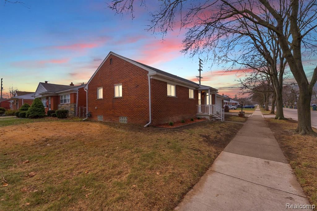 Fully remodeled brick ranch situated on a prime corner lot in the highly desirable Oakwood Blvd Lawn subdivision of Dearborn, offering immediate occupancy and true move-in-ready condition. This 3-bedroom, 1.5-bath home features approximately 2,134 total finished square feet including a fully finished basement, providing exceptional living space and versatility for both owner-occupants and investors. The main level showcases refinished hardwood flooring, recessed lighting, and a bright, open layout filled with natural light, complemented by a beautifully updated kitchen with white cabinetry, stainless steel appliances, modern backsplash, and stone countertops. The full bathroom has been tastefully renovated with contemporary tile finishes, while all bedrooms offer clean lines, fresh paint, and functional layouts. The finished basement expands the living area significantly with a large open space, additional half bath, and ideal setup for entertaining, recreation, or extended living. Exterior highlights include a solid brick elevation, covered front porch, fenced yard, patio area, and a 2-car attached garage with concrete driveway. Major mechanicals include forced air heating, central air, and updated systems throughout. Located at the corner of Hollywood and Oakwood Blvd, this property offers excellent access to major roads, shopping, dining, and is within the highly regarded Dearborn School District. Whether you are looking for a turnkey primary residence or a strong rental investment with immediate income potential, this property checks all the boxes with quality updates, functional layout, and a highly desirable location.