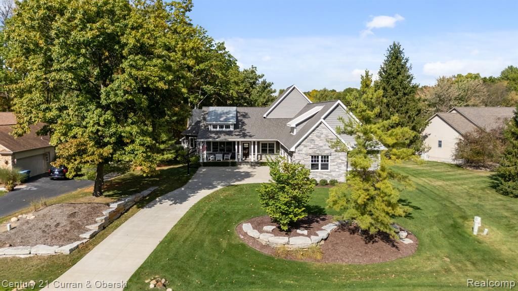 Incredible custom home on a .72-acre lot overlooking a serene pond, offering exceptional quality and craftsmanship throughout. Features include solid, refinished walnut flooring, triple crown molding, solid wood doors, wainscoting, and shiplap accents. Interior freshly painted (2023). The gourmet kitchen is equipped with top-of-the-line stainless steel Thermador appliances, Pioneer cabinetry, a large island, quartz countertops, and an oversized walk-in pantry. The first-floor primary suite is a true retreat, showcasing a painted shiplap ceiling with walnut accents, new walnut flooring (2023), a 14-foot custom built-in dresser, and a spa-like bath with a walk-in shower. A dedicated home office includes a custom built-in desk. Outdoor living is equally impressive with a raised patio, new railing and pergola (2023), all overlooking a 15x25 heated in-ground pool with bathhouse. The heated 3.5-car attached garage features epoxy flooring, LED lighting (2023), a workshop area, and built-in cabinetry. Additional highlights include Andersen 400 Series windows and door-walls and 200-amp electrical service. Finished daylight lower level (2024) offers a spacious great room, second kitchen, full bath, kid’s hideout, and a hidden home theater. Located on a private cul-de-sac in a highly desirable setting—this home is truly a masterpiece.
