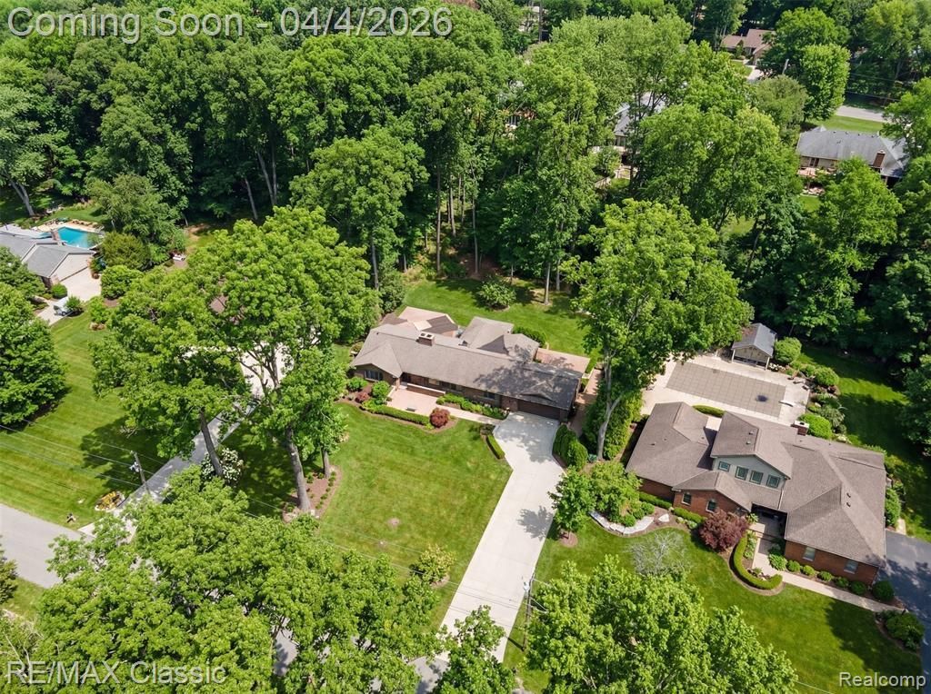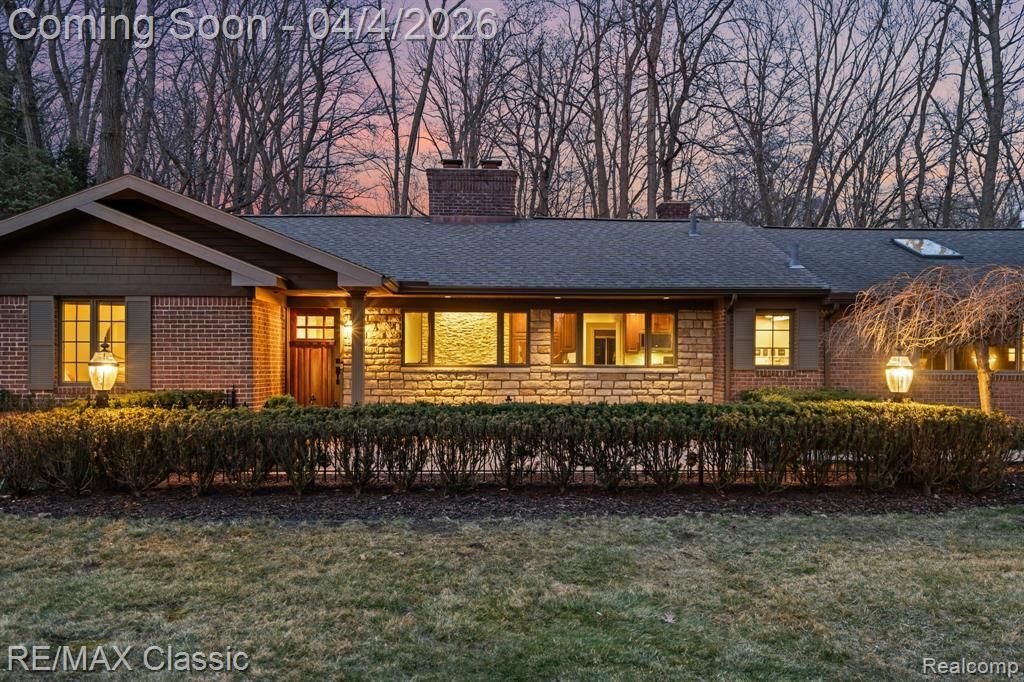 Discover mid-century sophistication in this custom-built home. Nestled on a private 3/4-acre park-like lot along Bell Creek. Once you pull into the extra-wide driveway, you'll follow the brick paver walkway through a beautiful terrace, where a solid walnut front door welcomes you inside. Natural light pours into every room through large windows. The kitchen features an oversized island that can comfortably seat 5, granite countertops, under cabinet lighting, high end commercial appliances, and plenty of storage. An extraordinary dining room exudes mid-century style with classic grid windows, vaulted ceiling with wood beams, wainscoting, stately gas fireplace, and original solid brass chandelier that has been given a timeless makeover. The hardwood floors from this room carry into the living room, where you'll find more wood beams, hand-painted grass cloth wallpaper, solid wood french doors that provide privacy from the dining room, and a dual doorwall leading to the north patio. A split bedroom floorplan helps to give everyone in the home their own space. The primary suite features a spacious bedroom and newly remodeled full bath with gold accents, high end European faucets, marble countertop, and stand up shower. Two more bedrooms and another full bath can be found on the other side of the home. Through the kitchen you'll pass by a half bath before reaching another set of solid wood french doors. Behind those doors is a room so incredible you'll never want to leave. It's *Speakeasy* meets *Lounge* meets *Library* - and full of possibilities. A built-in bookcase on each side of the windows, wet bar, and temperature controlled gas fireplace. Outside you'll find an attached 2 1/2 car heated garage, as well as another 2 car heated garage in the backyard, and shed. An additional patio is located on the south side of the home. You'll enjoy having plenty of space to entertain or unwind, and years of maintenance free living with all new mechanicals.