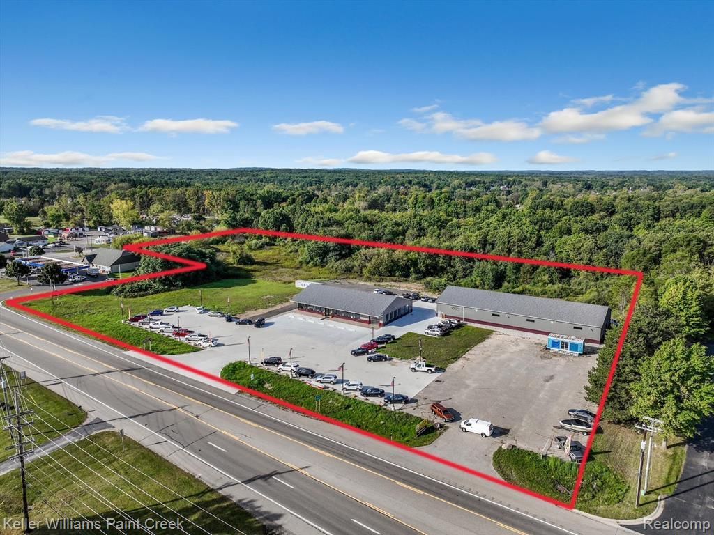 High-visibility commercial opportunity on M-24 (S Lapeer Rd) in Metamora. This ±15,000 SF property sits on approximately 9 acres with over 500 feet of frontage on S Lapeer Rd and additional frontage on Pratt Rd, providing excellent exposure and access. The site includes a ±9,000 SF service building and a ±6,000 SF showroom/retail structure, offering flexible space for a variety of commercial uses. Ideal for automotive, equipment sales, contractor headquarters, fleet service, or other owner-user operations requiring building space and outdoor yard area. Large parcel allows for expansion, outdoor storage, or potential future development (subject to township approval and zoning). Conveniently located minutes from I-69 with strong daily traffic counts along the M-24 corridor.