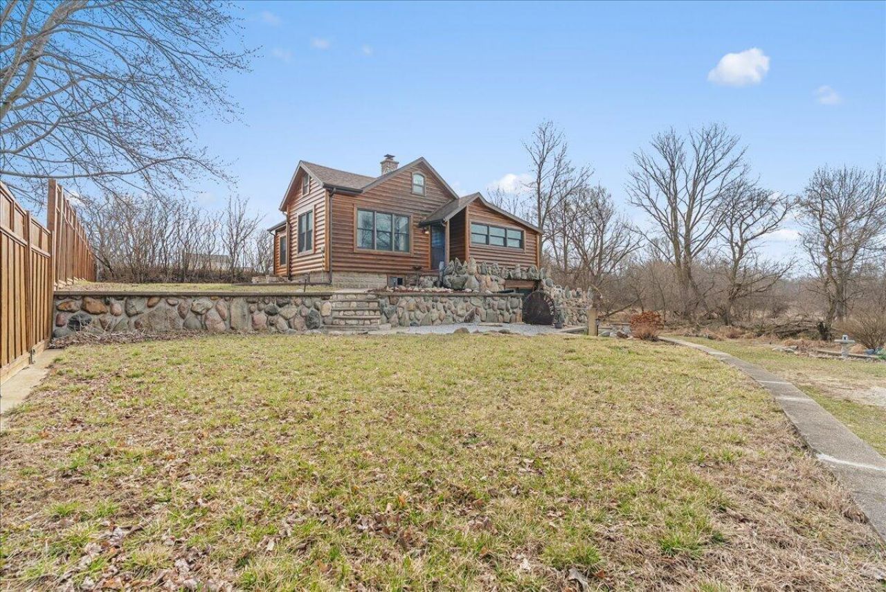 Welcome to Rustic Waters at 5726 Musgrove in Sunfield, a one-of-a-kind cedar log retreat offering unmatched natural beauty and modern rustic charm. Set on nearly 2 private, fenced acres with a gated driveway, this incredible property features two stunning waterfalls, including one along Ionia Countys only trout stream. With the potential for hydro power (approx. 2kW), this is a rare opportunity to own a truly unique and self-sustaining landscape.The home has been completely remodeled from top to bottom, featuring new Andersen windows, spray foam insulation, all new electrical and plumbing, a new septic system, and a stainless steel water heater. Inside, youll find 3 bedrooms and 2 full bathrooms with marble floors and surrounds, including a primary suite with a jetted tub. Vaulted wood ceilings, a spiral staircase leading to a loft overlooking the main living area, and a warm blend of hardwood and LVP flooring create a stunning interior. The custom kitchen features granite countertops, hickory cabinetry, and stainless steel appliances, opening to inviting living spaces that include a family room, office, walk-in closet, and main-floor laundry hookups. The finished walkout lower level adds even more functional living space.Step outside and experience the true magic of this property, a large concrete patio overlooking the creek, terraced natural stone walls, and a second patio with an outdoor fireplace overlooking the waterfall. A covered front porch offers another peaceful place to take in the surroundings. Additional features include a Culligan water softener, electric heat, ample storage space, and the option to purchase the home fully furnished. This is more than a home, its a private retreat, a nature lovers dream, and a truly rare find unlike anything else on the market.