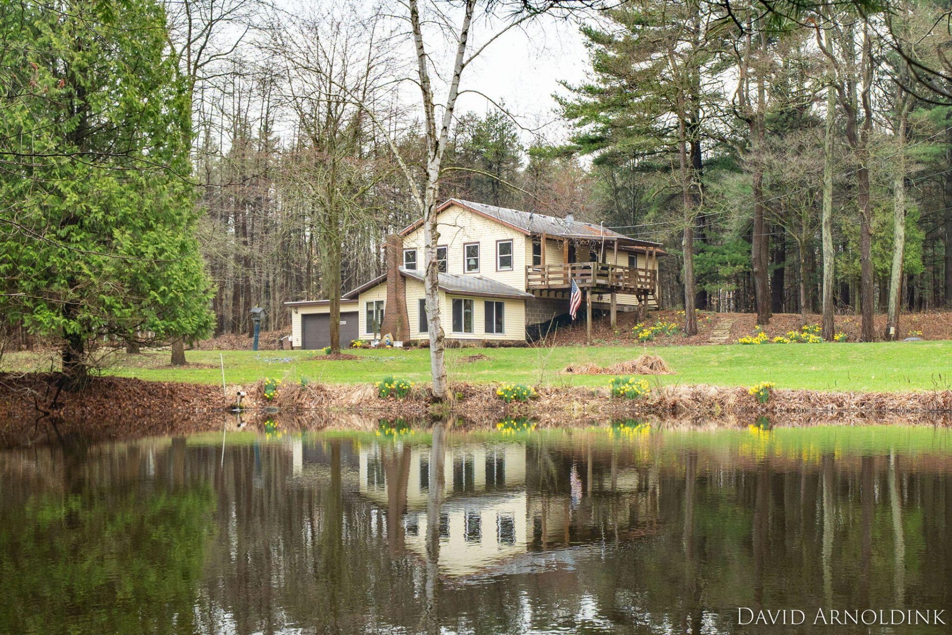 Incredible opportunity in Laketown Township for this home on a private wooded 10 acre parcel! The long driveway winds you back to the residence nestled deep into the property. Enjoy the private pond views, along with deer, turkey, and birds that are frequently seen. Inside the home boasts open living room, kitchen, and dining areas taking in the water views. The primary bedroom was recently expanded and remodeled, and features a large walk-in closet. Downstairs family room has a fireplace and nearby four season room has large windows and wood burning stove. Off the garage is an expansive mud/laundry room. The outbuilding has deep 2 stalls with storage above. There are trails and public land next door for your enjoyment. This private setting is all within minutes of Holland and Saugatuck, along with the shores of Lake Michigan beaches. Live your best life in the tranquility of this property!