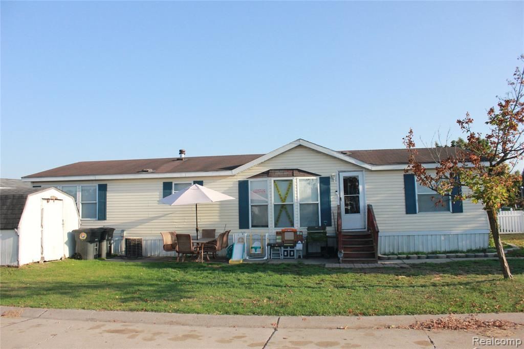 Charming 3-bedroom, 2-bath manufactured home in the City of Romulus! This 1,624 sq. ft. residence features an open living area with vaulted ceilings and carpeted floors. The kitchen offers dark cabinetry, a center island, and stainless steel appliances. The primary suite includes a full bath, with two additional bedrooms and a second full bath on the main level. Exterior features include a front lawn, rear entry steps, and a storage shed. Conveniently located near Ecorse Rd and Cogswell St with easy access to shopping, dining, and freeways. Forced-air heating, city water, and sewer at the street. Park fee is $685.